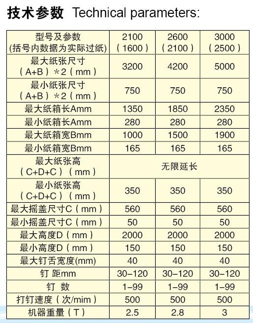 双片式彩箱钉箱机主要功能及零配件